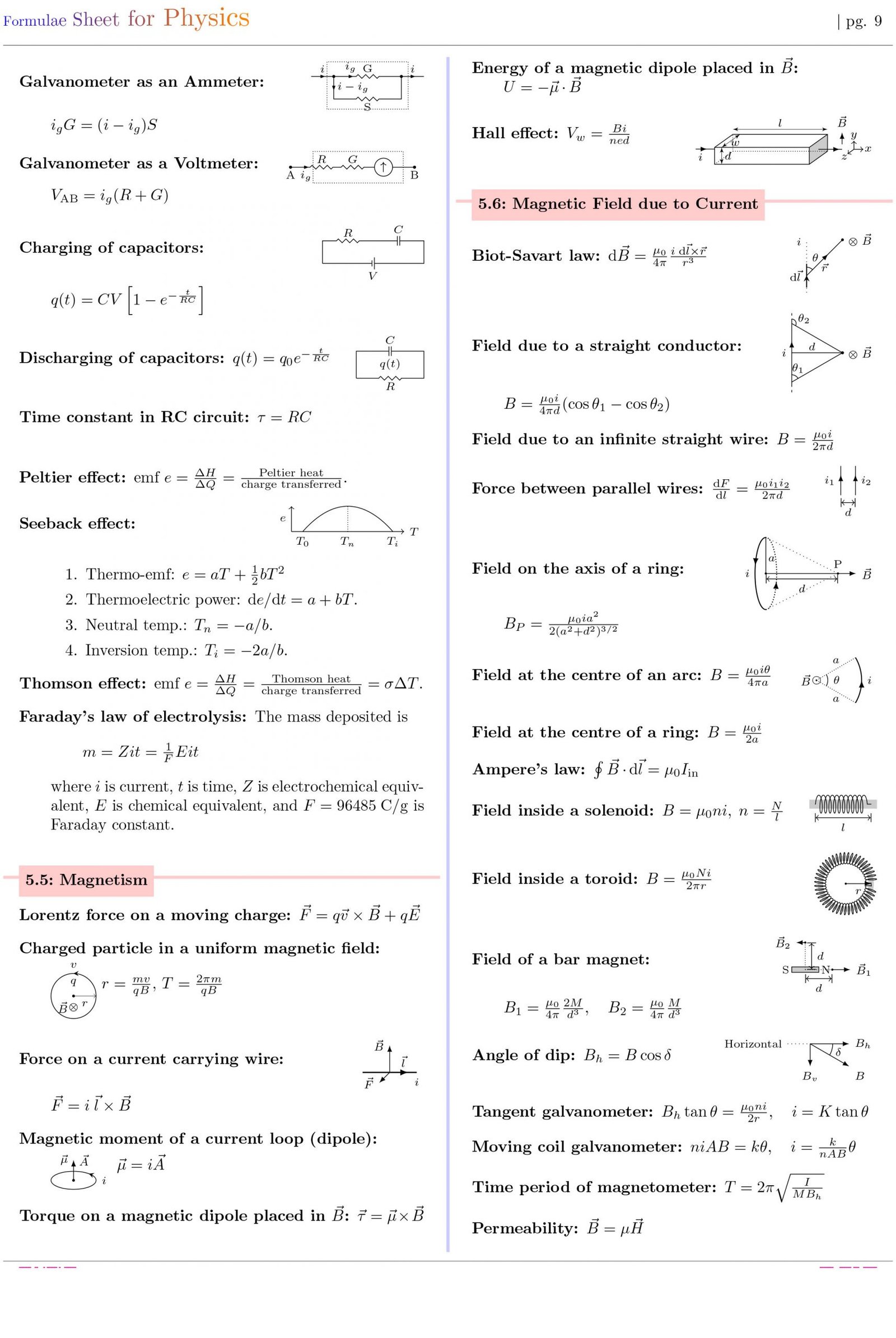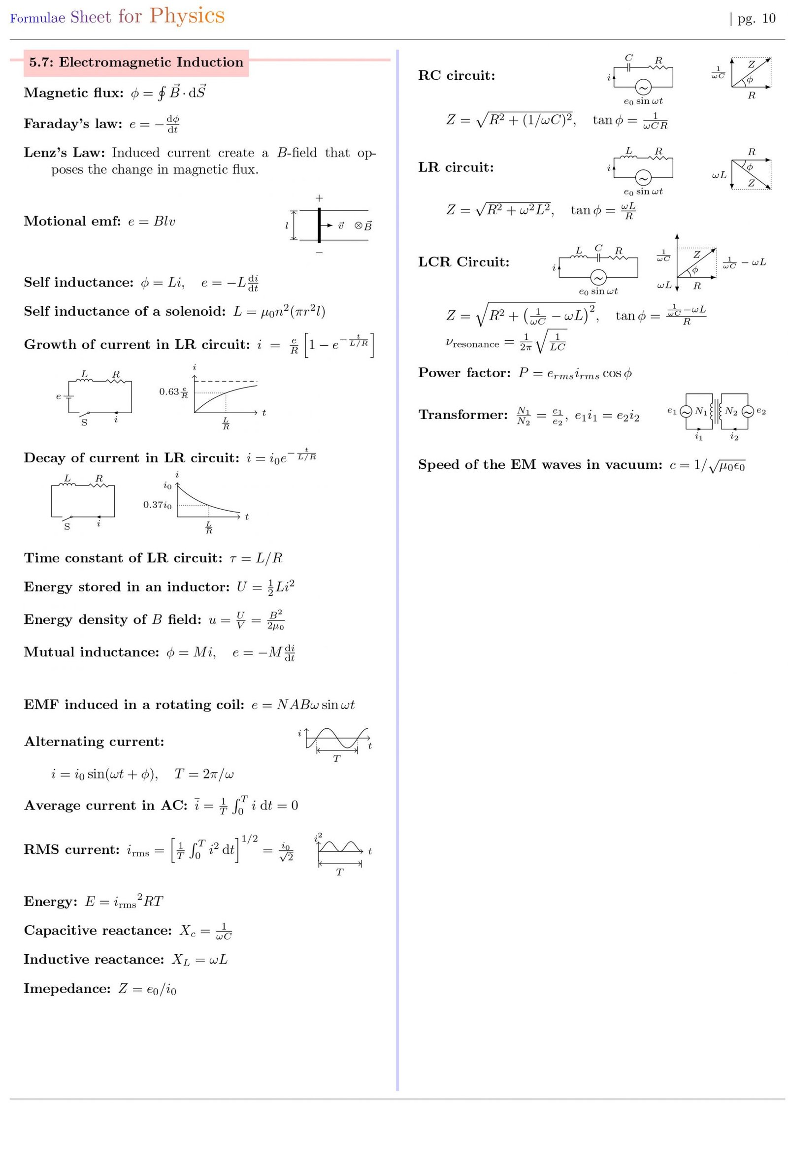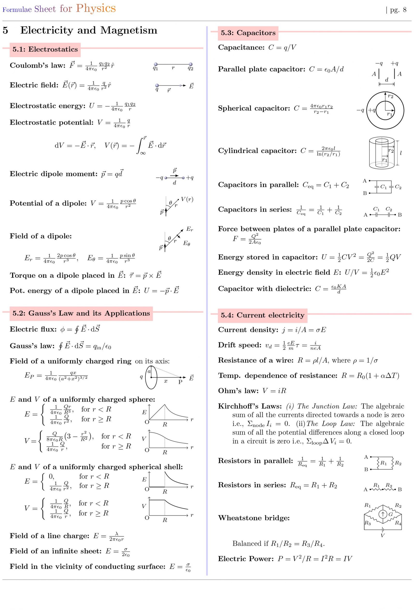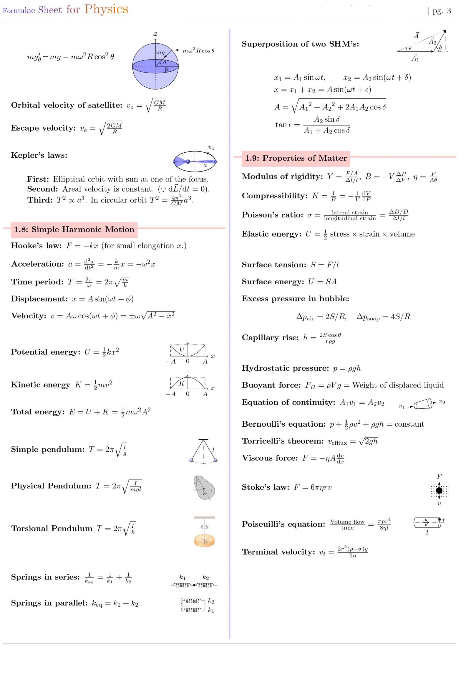 Formulae Sheet for Physics