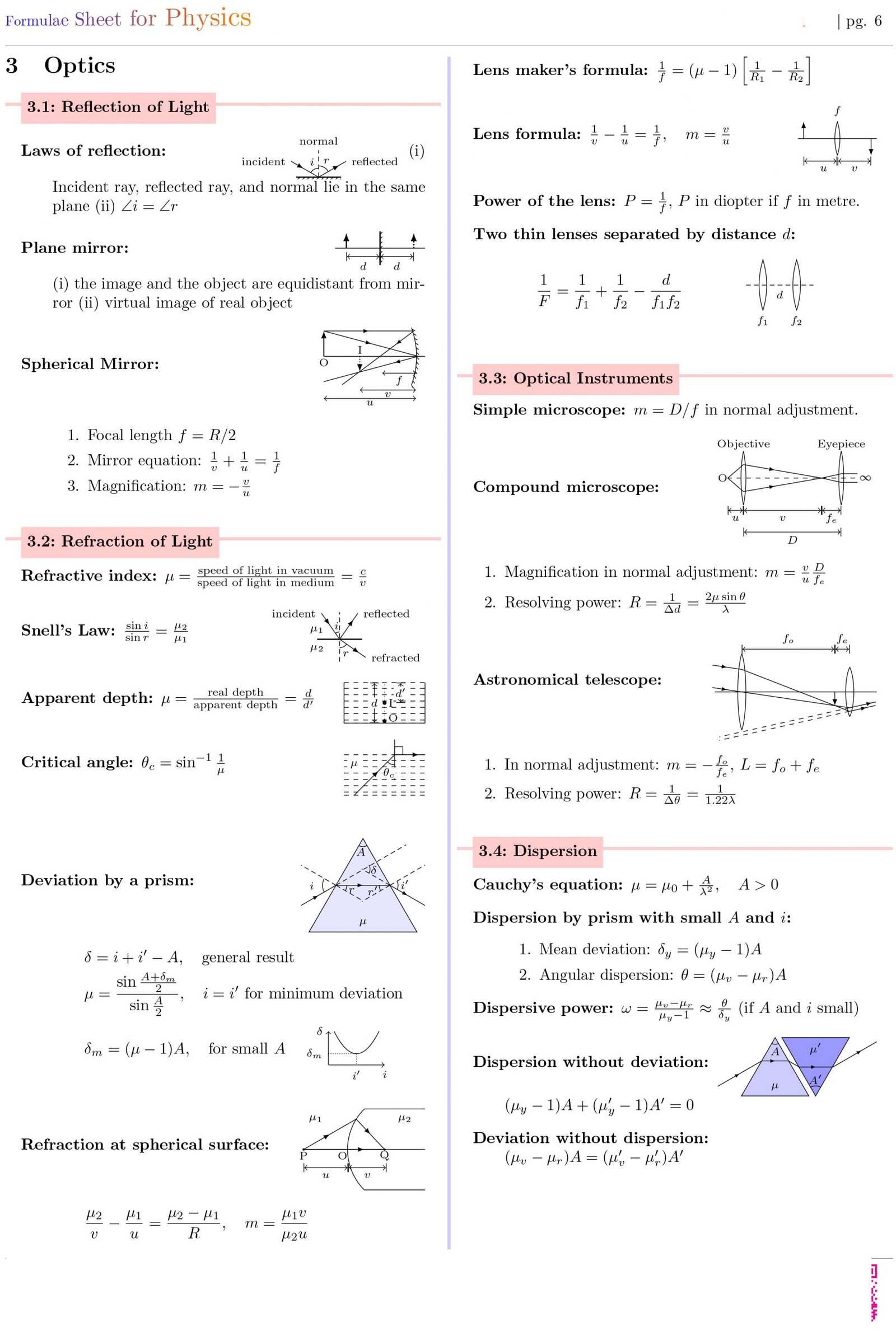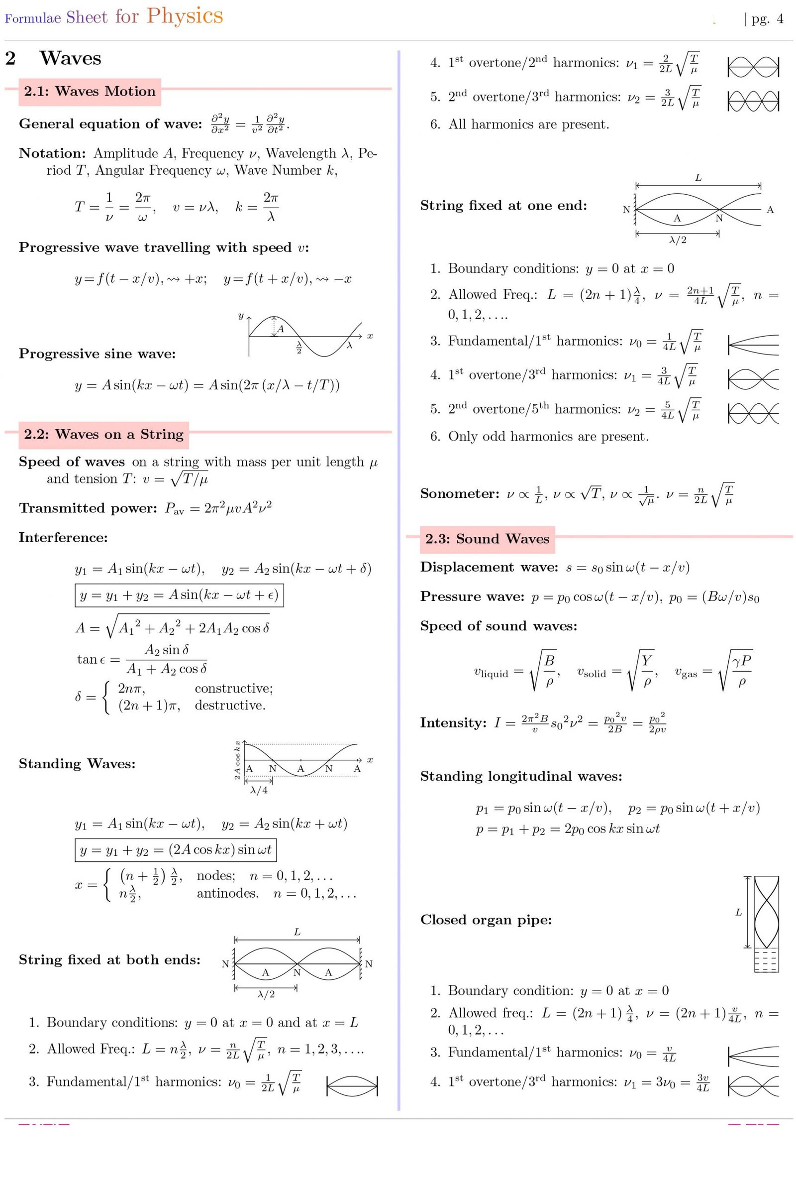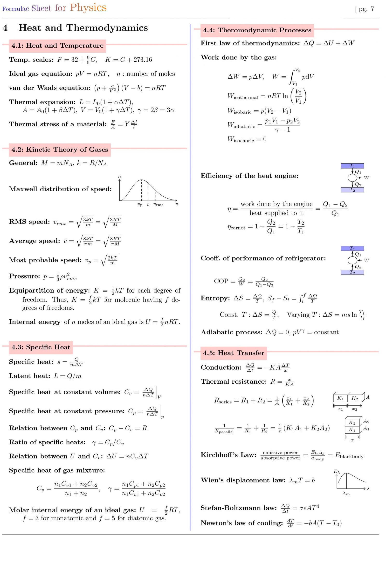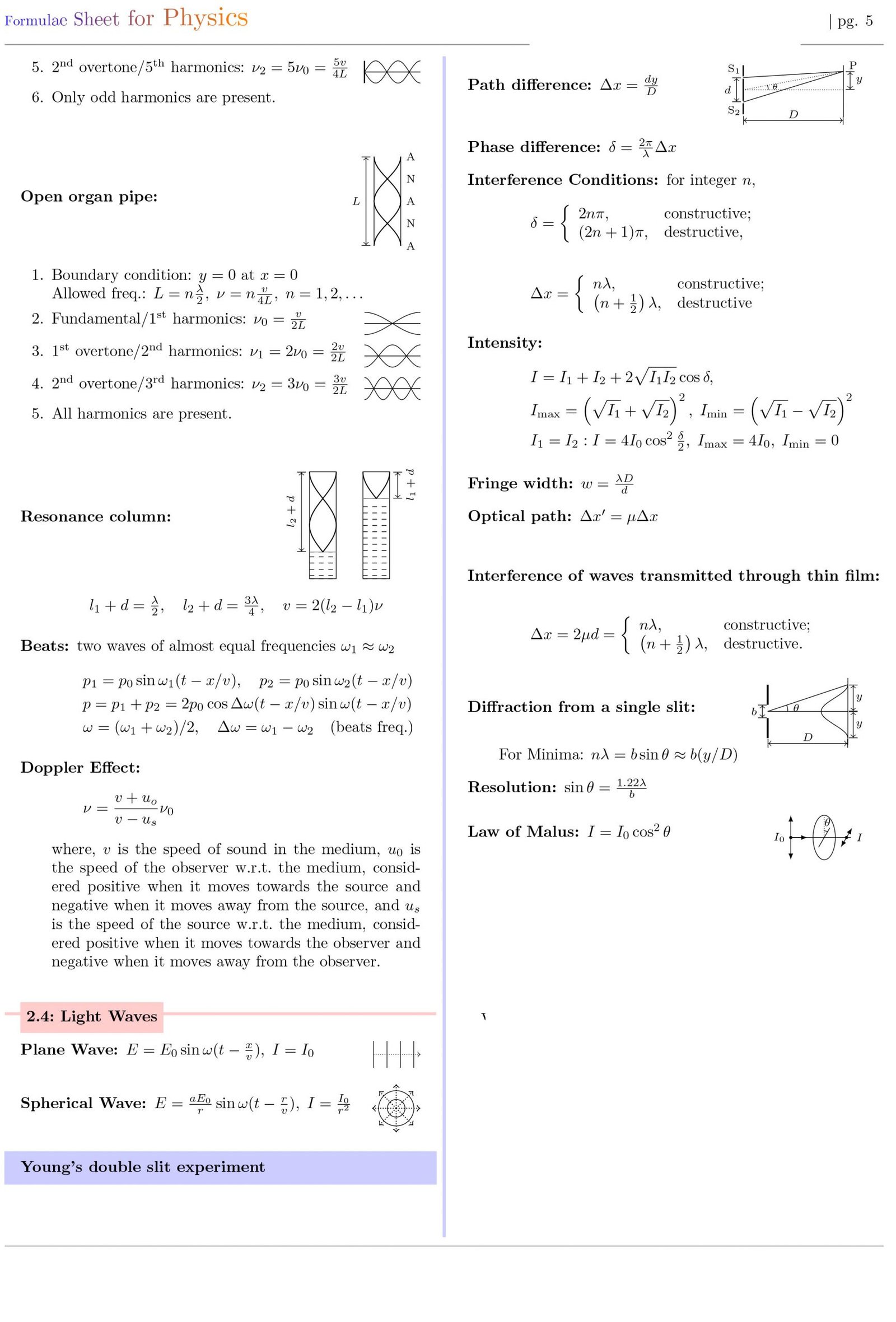 Formulae Sheet for Physics