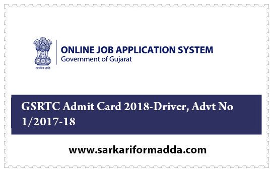 GSRTC Admit Card 2018 – Driver (Advt No. 01/2017-18) Call Letter . GSRTC has released call letter for attending online examination for the post of Driver (Advt No. 01/2017-18) Call Letter. Candidates who have applied for this post can download their call letter at below link.